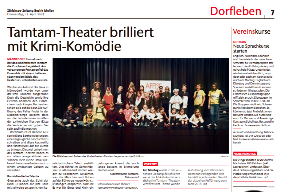 Artikel in der Zürichseezeitung vom 12. April 2018